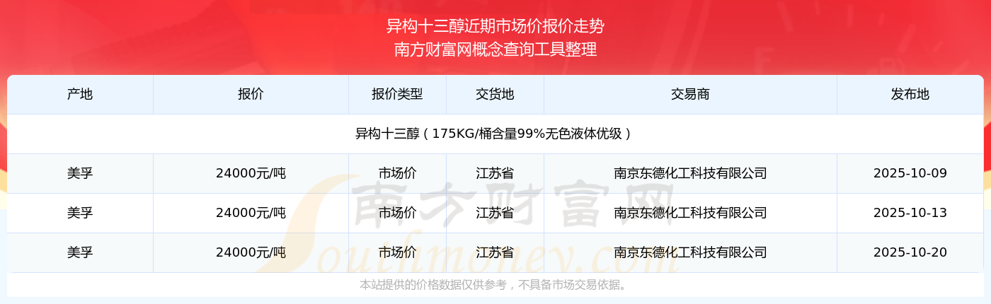 2025年10月20日异构十三醇市场价报价查询