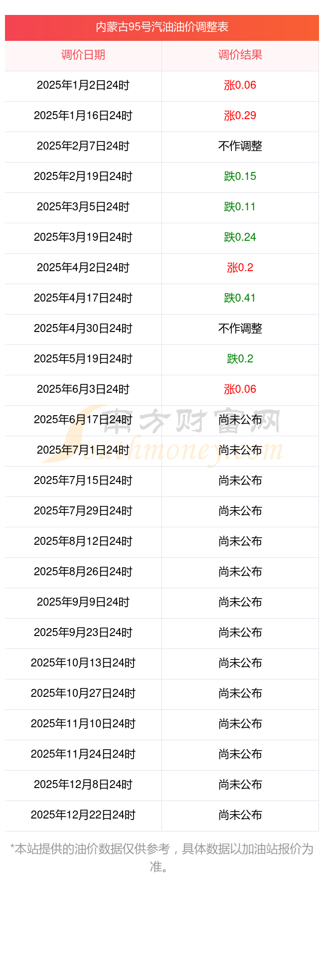 2025年油价调整一览表