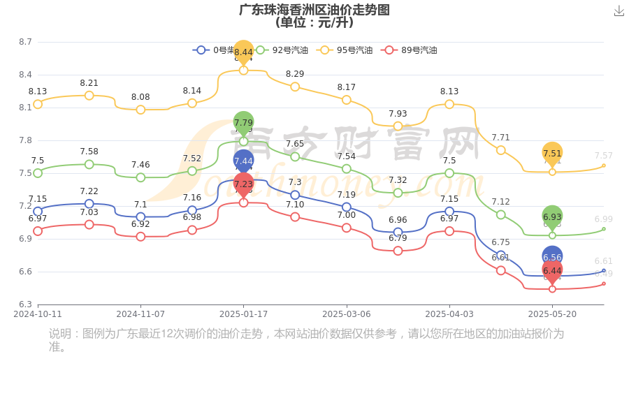 6月8日广东珠海香洲区0号柴油历史油价走势图