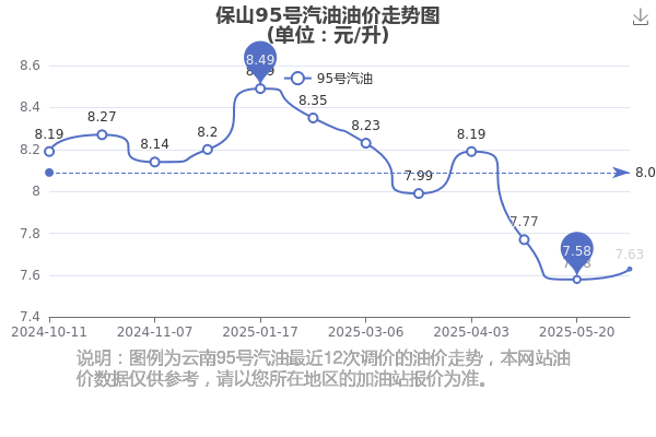 今日95号汽油油价多少钱一升?今天保山95号汽油价格一览表
