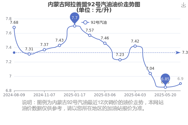 内蒙古阿拉善盟最近调价的油价走势图