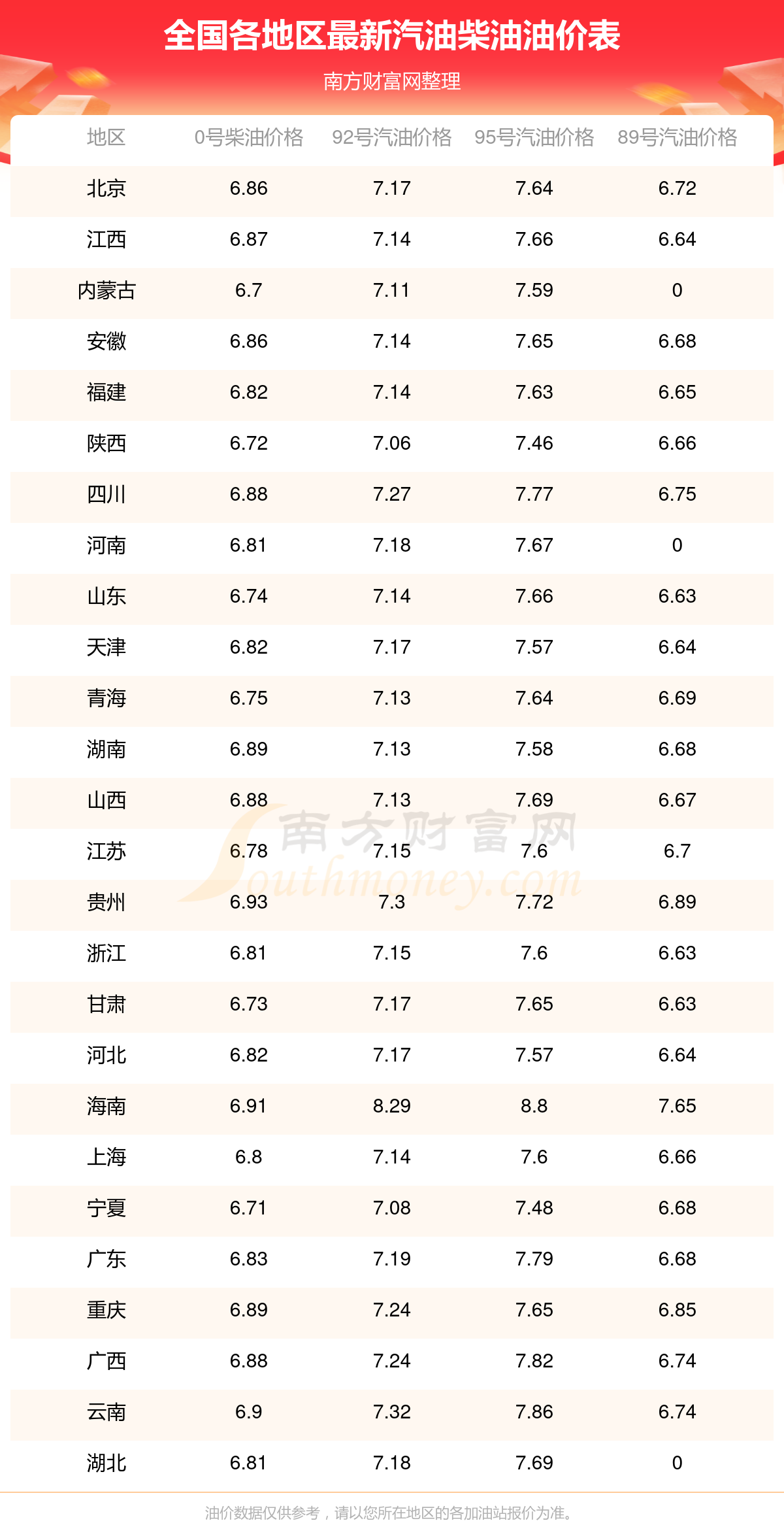 2025年6月28日今日油价一览表,92、95号油价多少钱一升?