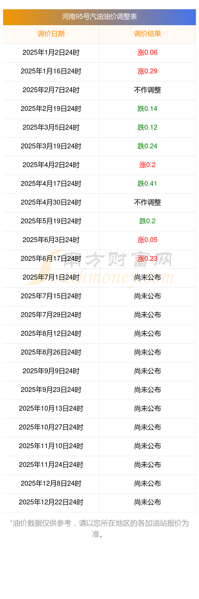 2025年油价调整时间表(附河南濮阳最新价格信息)(7月1日更新)
