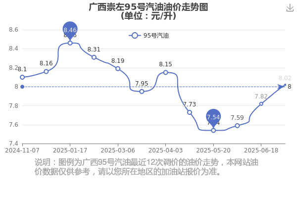 2025年广西崇左汽油价格历史走势图