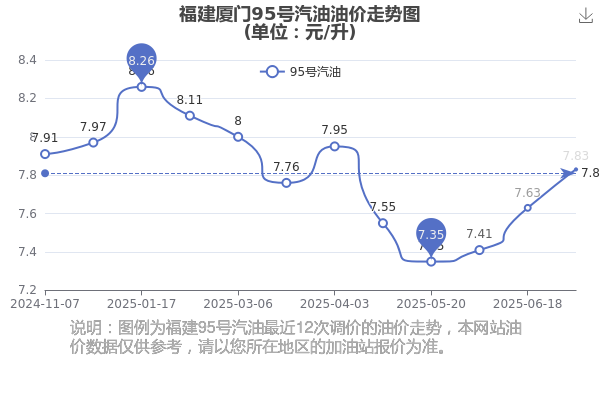 2025年福建厦门汽油价格历史走势图