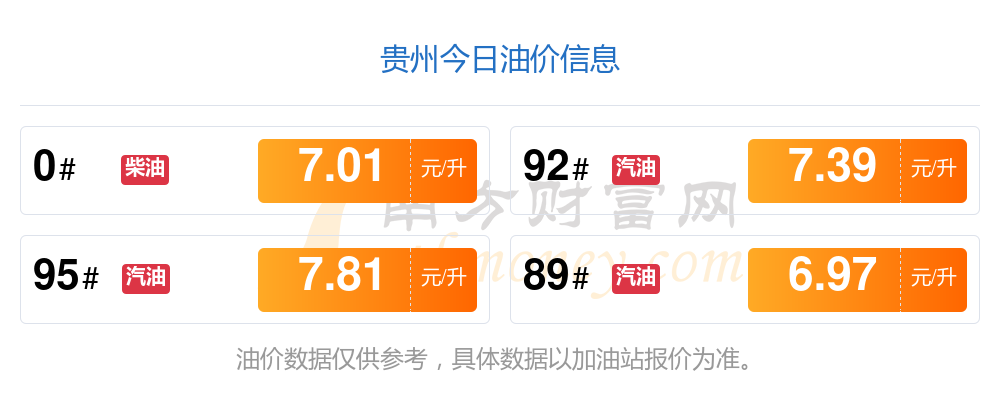 油价数据仅供参考,请以您所在地区的各加油站报价为准。