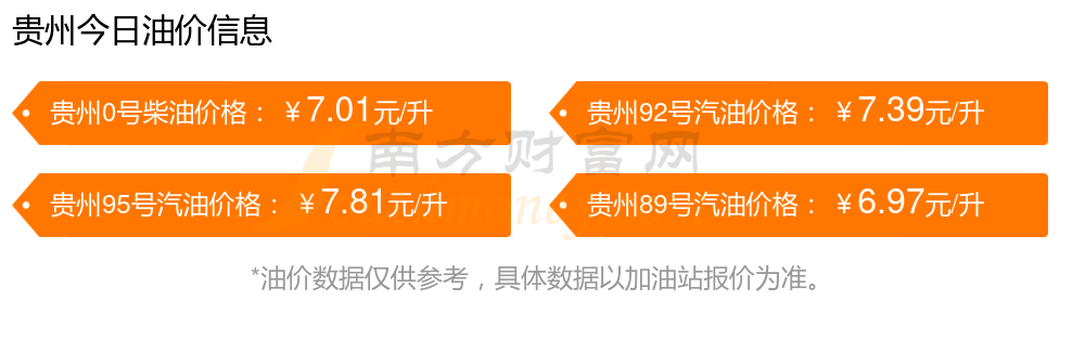 贵州清镇今日7月22日油价92号汽油多少钱一升?
