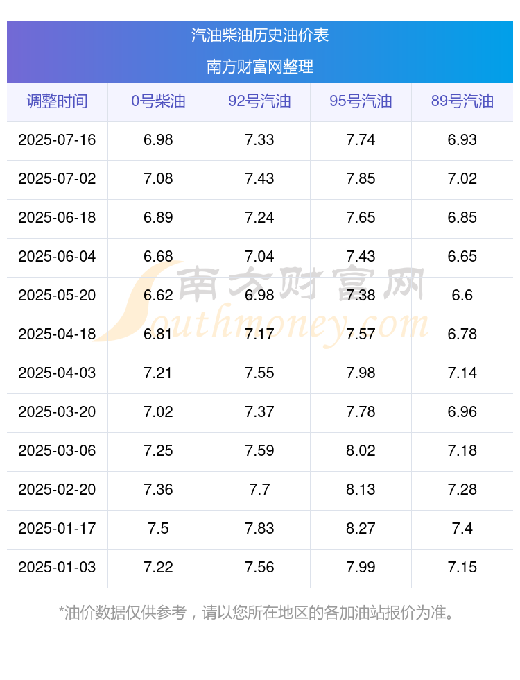 2025年油价调整日历表来了!(2025-07-22)秀山7月29日24时油价调整!