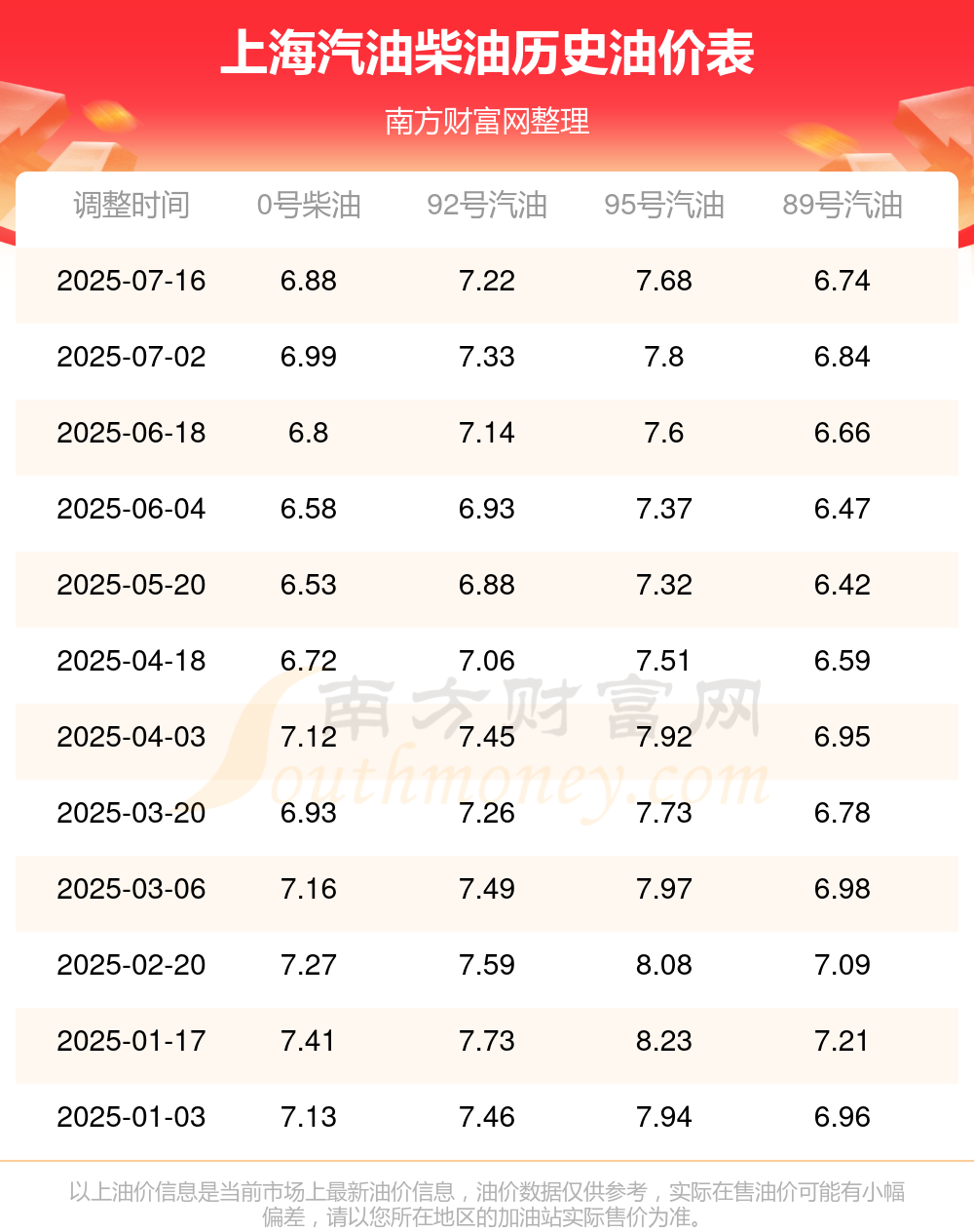 7月25日,上海92号汽油的价格是7.22元每升,本次的调整时间为7月16日,对比上次的调整下调了0.11元,下调1.501%,下次调整时间为7月29日24时,还有4.77天。