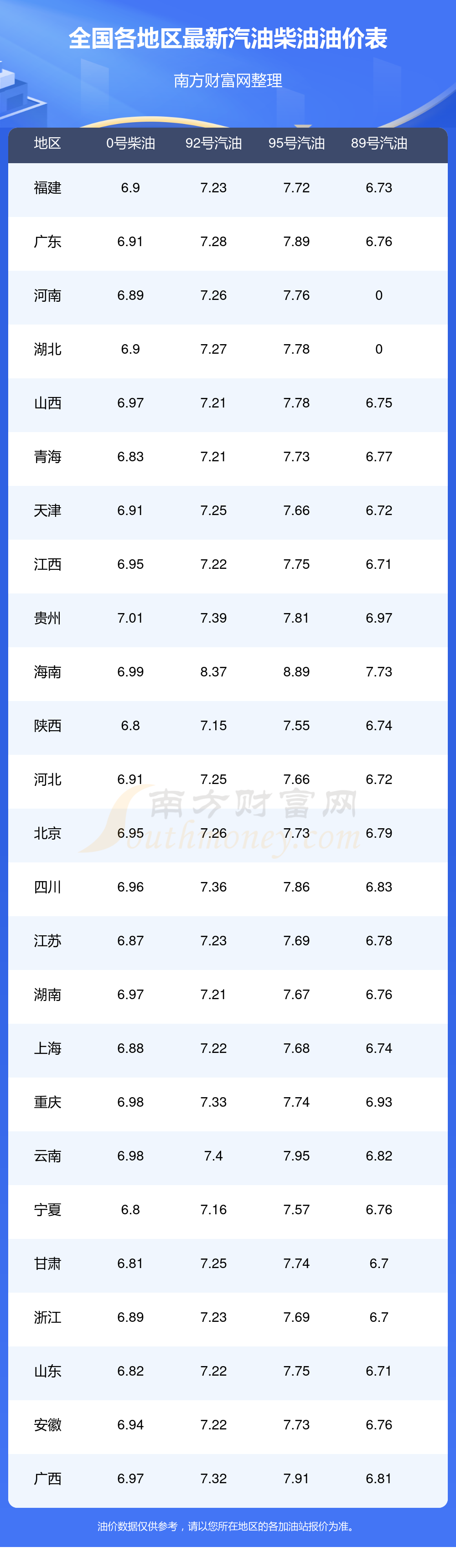 本站提供的油价数据仅供参考,具体数据以加油站报价为准。