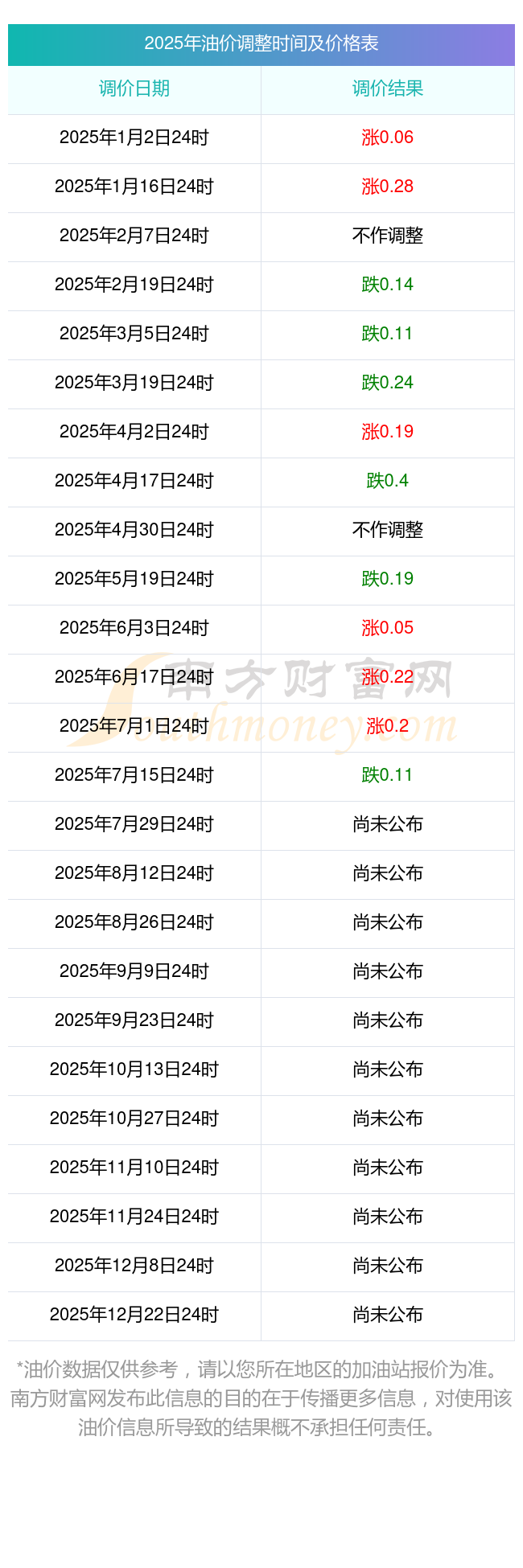 2025年国内油价调整日期时间表及价格查询(07-25)国内油价今日价格