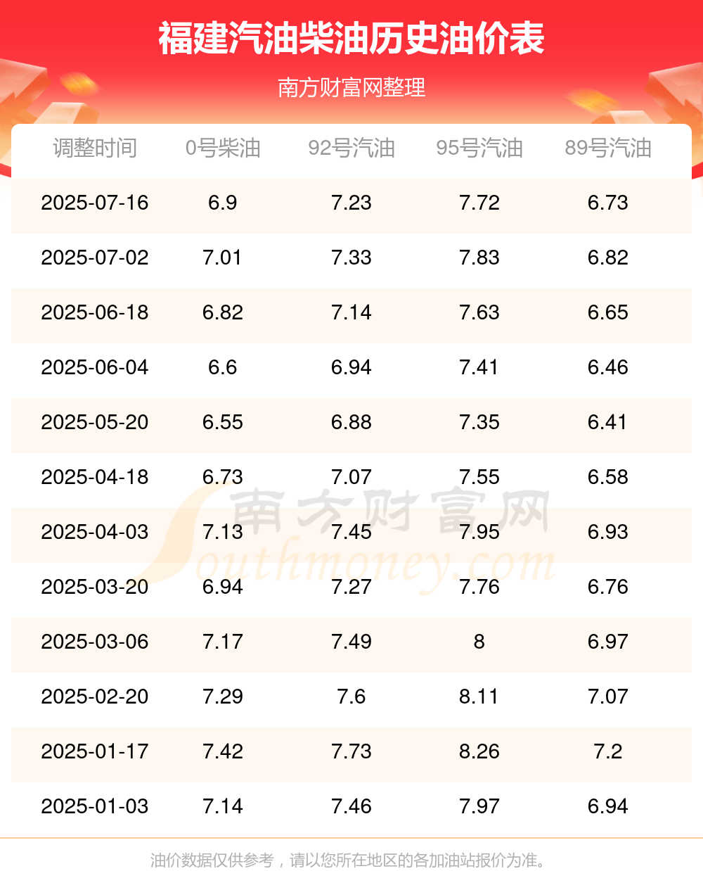 2025年福建油价调整最新消息(7月26日最新价格表)