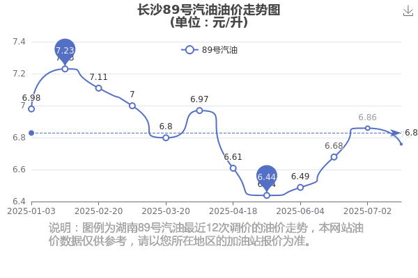 2025年长沙汽油价格历史走势图