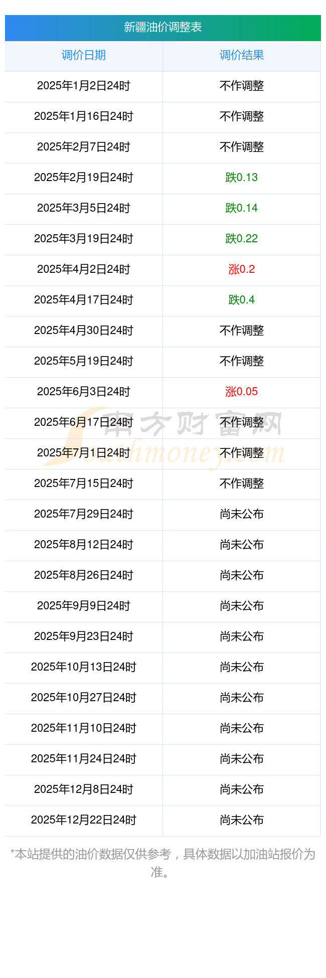 2025年新疆乌鲁木齐油价调整日历时间表(7月29日实时更新)