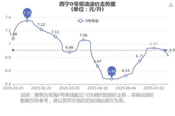 西宁汽油、柴油7月30日每升的价格(油价调整时间7月16日):92号汽油7.21元;95号汽油7.73元;89号汽油6.77元;0号柴油6.83元。下一轮油价调整时间8月12日24时,距离现在还有13.73天。