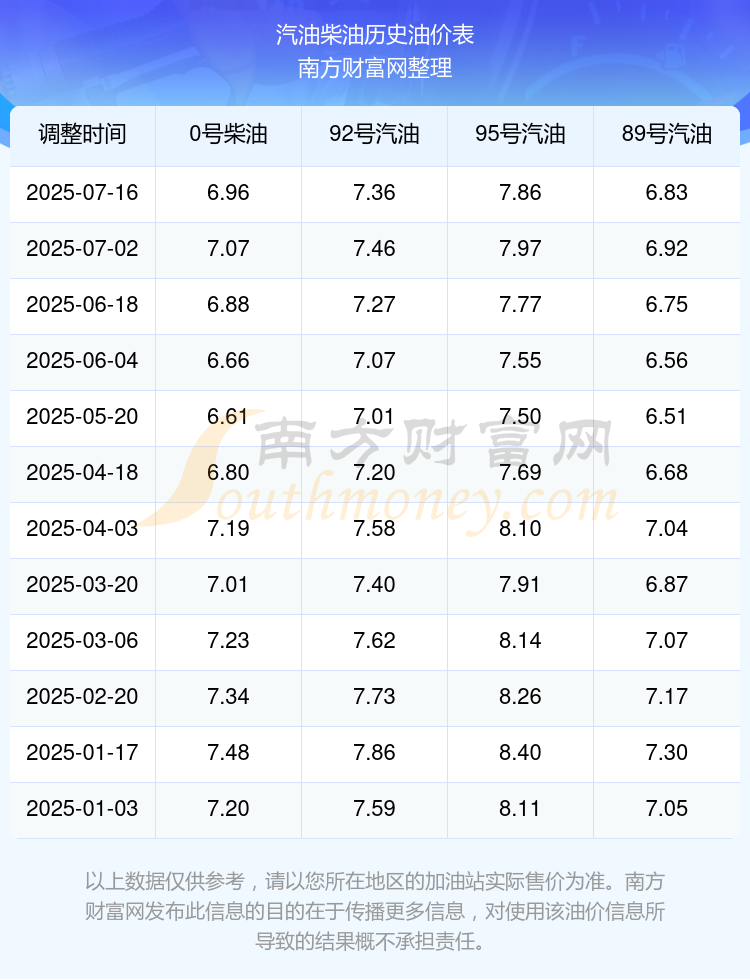 2025年95号汽油价格一览表