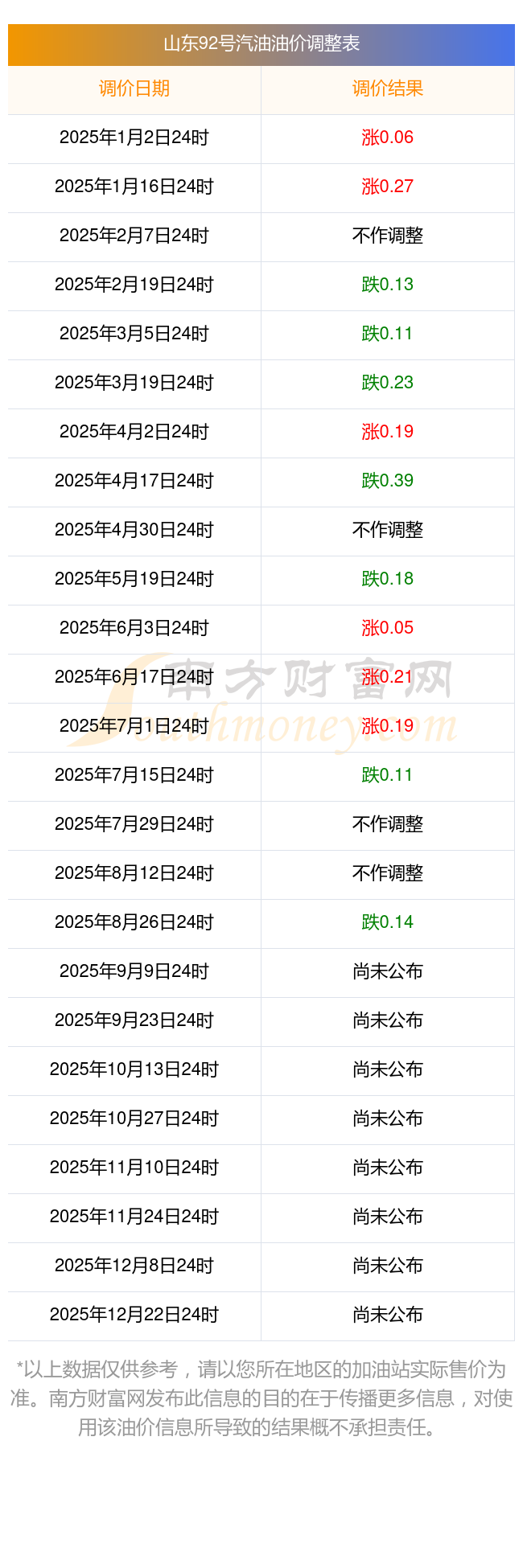 山东青岛2025年油价调整时间及最新价格表