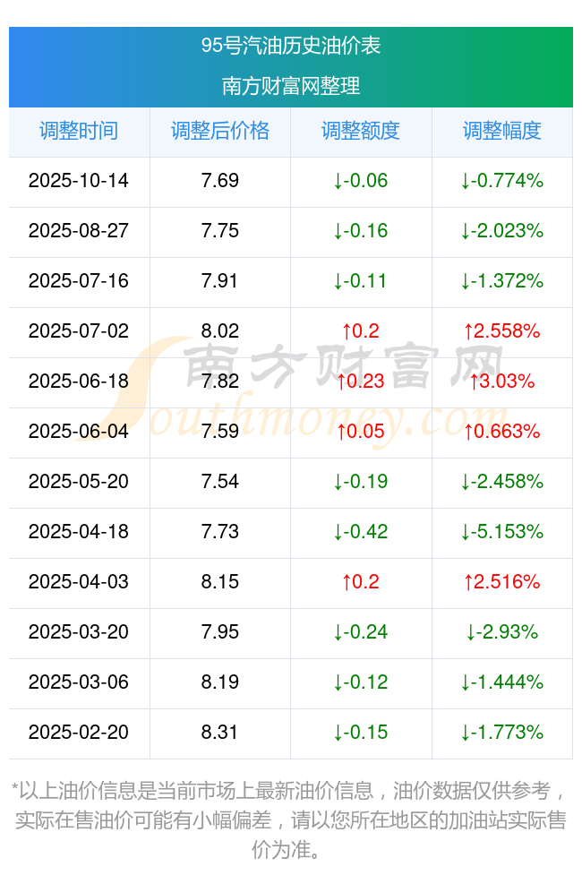 广西2025年汽油价格调整时间表
