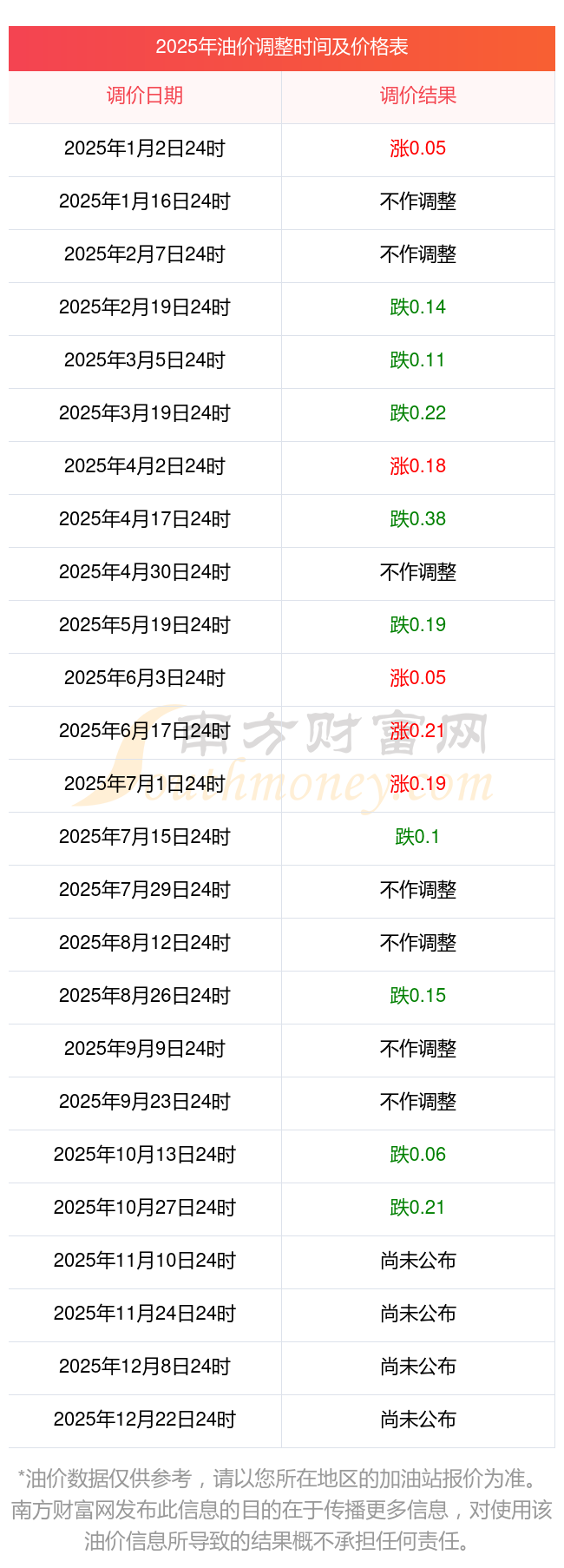 汽油价格调整最新消息:下一轮油价调整11月10日24时开启。油价最新调整时间为10月28日 :