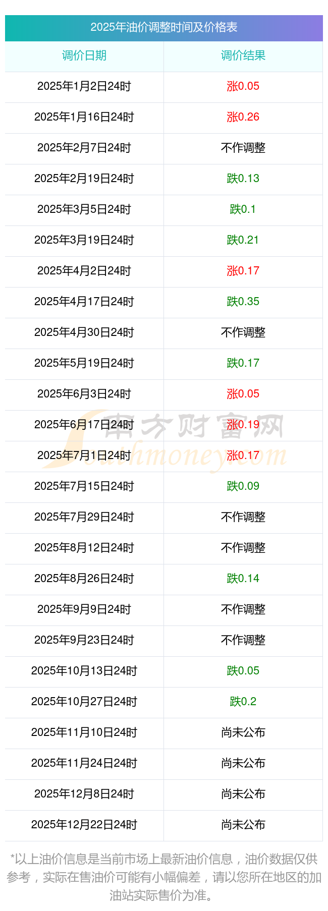 2025年翔安区油价调整时间表