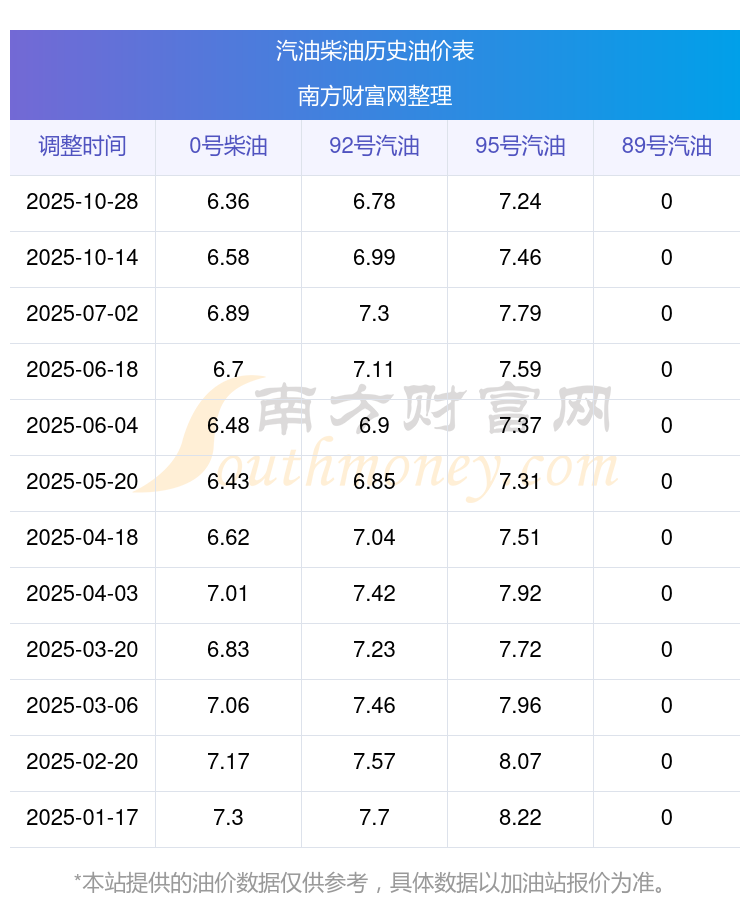 内蒙古乌兰察布95号汽油11月4日的价格为7.24元/升,本次油价的调整时间为10月28日,对比上次油价调整时间10月14日的价格7.46元/升,共降了0.22元,降幅达2.949%。下一轮油价调整时间11月10日24时,距离现在还有6.96天。