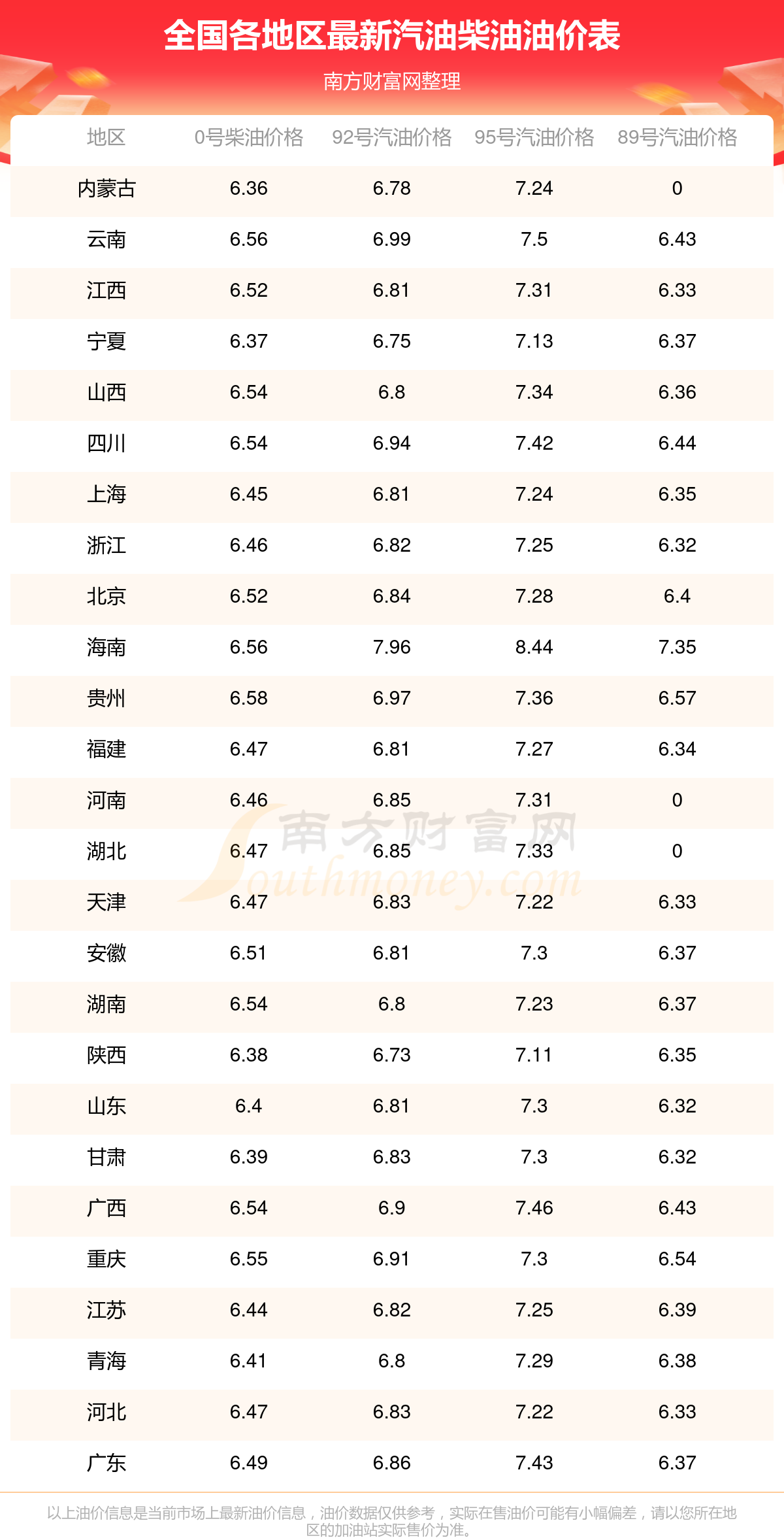 本站提供的油价数据仅供参考,具体数据以加油站报价为准。