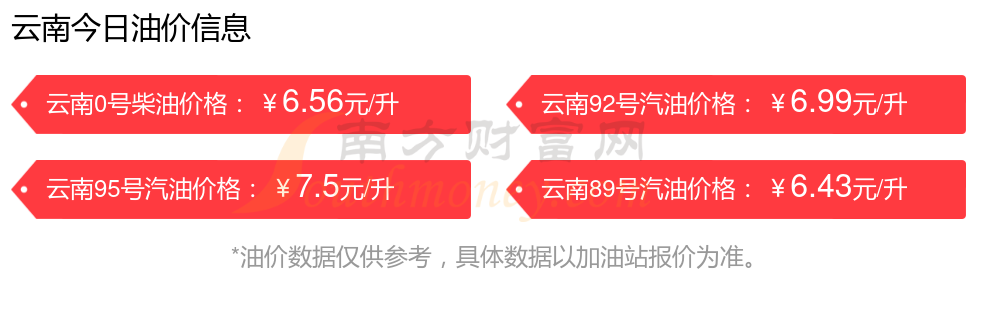油价数据仅供参考,请以您所在地区的各加油站报价为准。