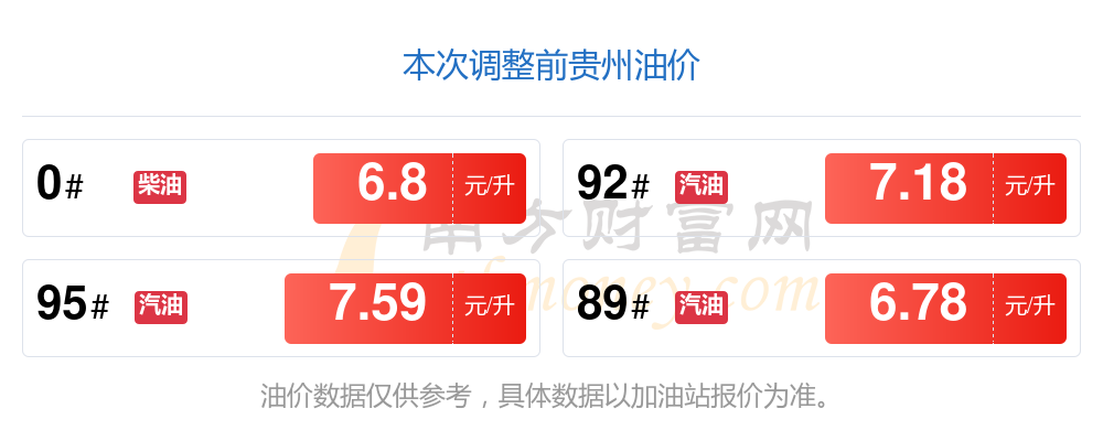 以上数据仅供参考,请以您所在地区的加油站实际售价为准。南方财富网发布此信息的目的在于传播更多信息,对使用该油价信息所导致的结果概不承担责任。