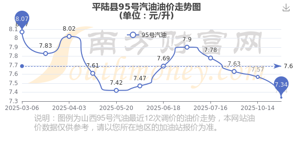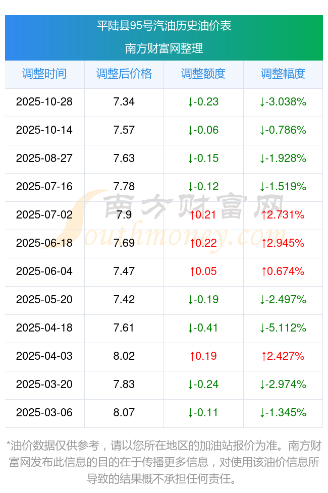 平陆县95号汽油历史油价一览表