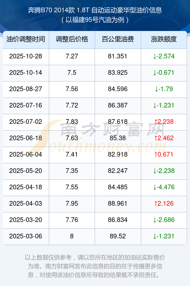 以上油耗数据由南方财富网整理提供,仅供参考。