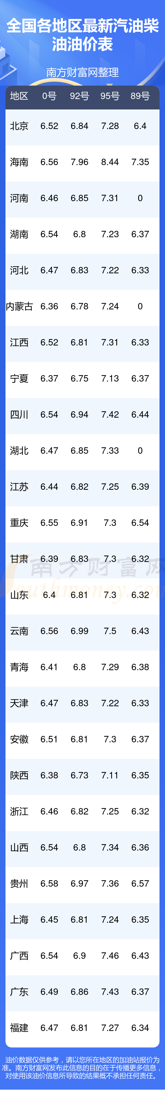 2025年11月4日全国油价调整及最新汽油价格表