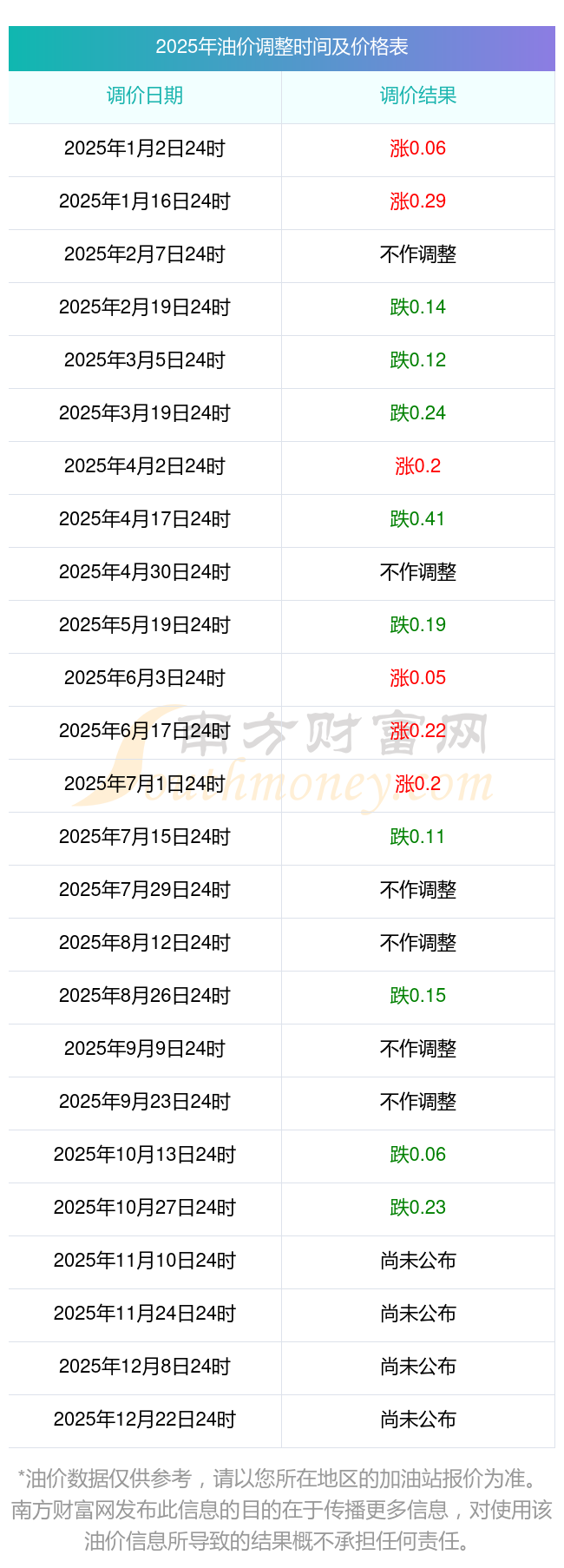 2025年11月4日全国各地汽油价格调整时间及价格一览表