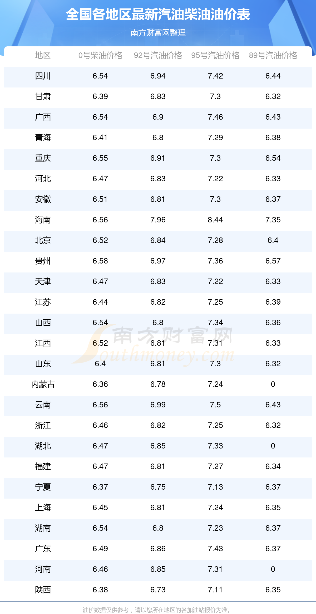 2025年11月4日全国油价调整及最新汽油价格表