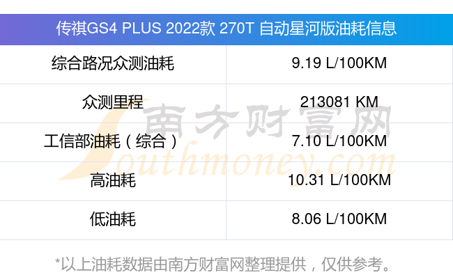 数据仅供参考,一般现实油耗与测试值会有差异,请以实际油耗为准。