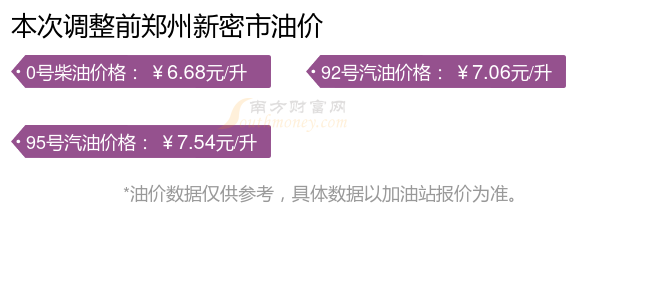 郑州新密市11月4日油价调整时间及价格表