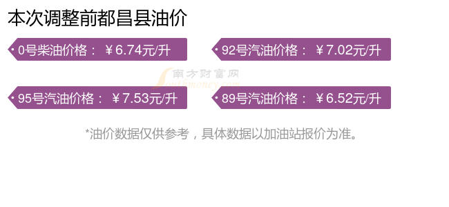 11月4日都昌县汽油、柴油价格是多少钱一升?10月28日调整后,92号汽油为6.81元,下跌了0.21元,下跌幅达2.99%;95号汽油为7.31元,下跌了0.22元,下跌幅达2.92%;89号汽油为6.33元,下跌了0.19元,下跌幅达2.91%;0号柴油为6.52元,下跌了0.22元,下跌幅达3.26%。