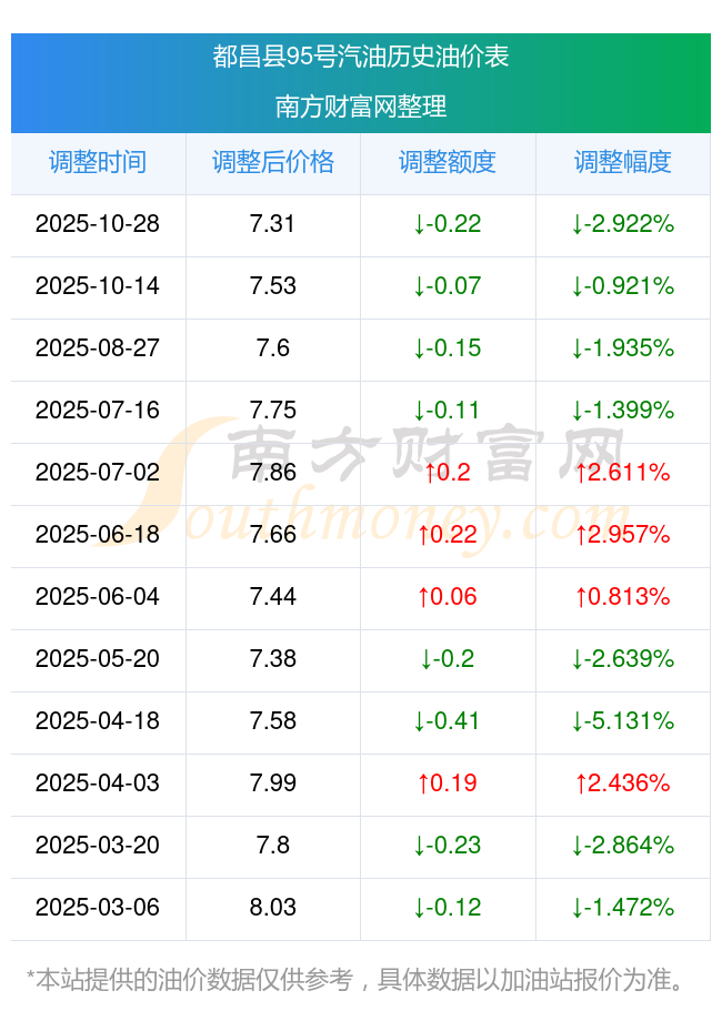 以上油价信息是当前市场上最新油价信息,油价数据仅供参考,实际在售油价可能有小幅偏差,请以您所在地区的加油站实际售价为准。
