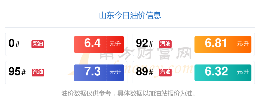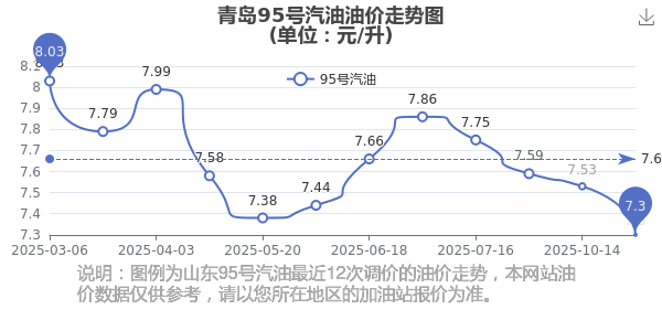 11月4日青岛汽油、柴油每升价格:距离最近的油价调整时间是10月28日,92号汽油为6.81元,下调了0.21元,下调幅达2.99%;95号汽油为7.3元,下调了0.23元,下调幅达3.05%;89号汽油为6.32元,下调了0.2元,下调幅达3.07%;0号柴油为6.4元,下调了0.22元,下调幅达3.32%。下一轮油价调整时间11月10日24时,距离现在还有6.96天。