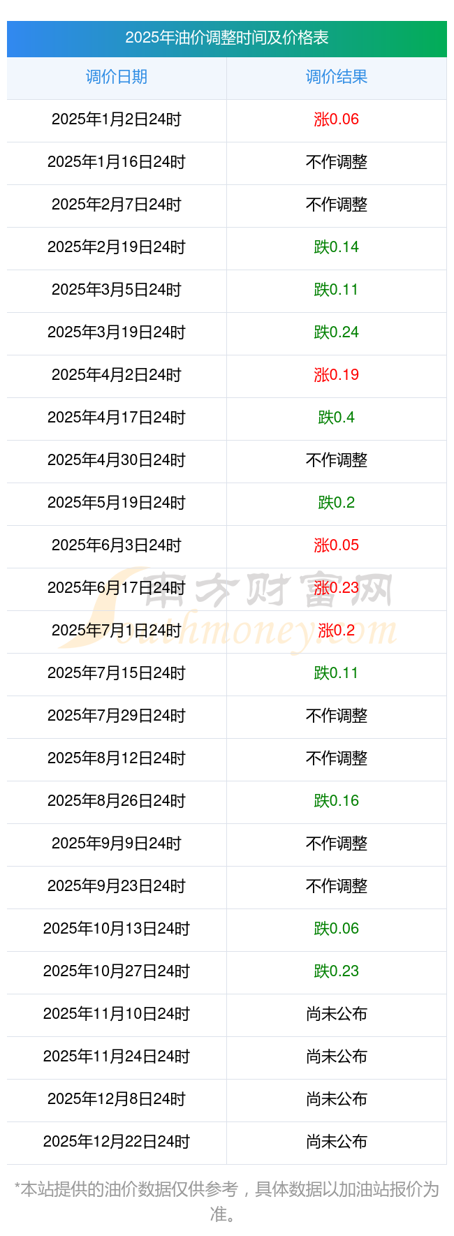 11月5日贵州汽油、柴油每升最新价格多少钱一升?具体为:92号汽油6.97元,减了0.21元;95号汽油7.36元,减了0.23元;89号汽油6.57元,减了0.21;0号柴油为6.58元,减了0.22元,本次的调整时间是10月28日。下一轮油价调整时间11月10日24时,距离现在还有5.96天。