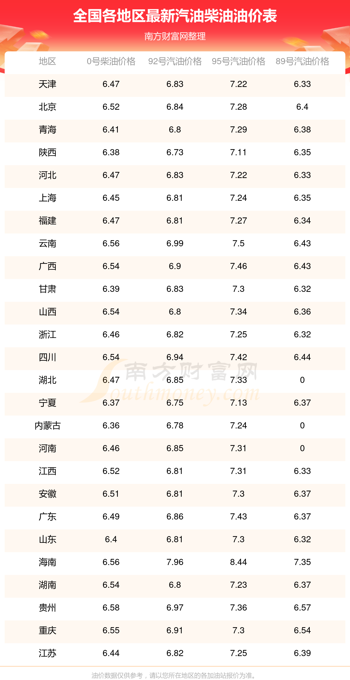 本站提供的油价数据仅供参考,具体数据以加油站报价为准。