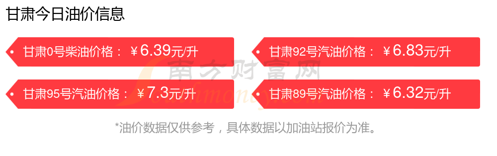 油价调整最新消息:甘肃汽油、柴油11月5日每升最新价格多少钱一升?本次油价调整时间为10月28日,92号汽油为6.83元,减了0.22元;95号汽油为7.3元,减了0.22元;89号汽油为6.32元,减了0.19;0号柴油为6.39元,减了0.22元。下一轮油价调整时间11月10日24时。