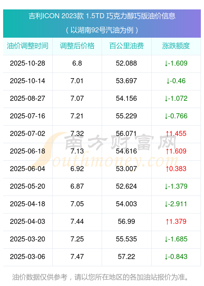 以上油耗数据由南方财富网整理提供,仅供参考。
