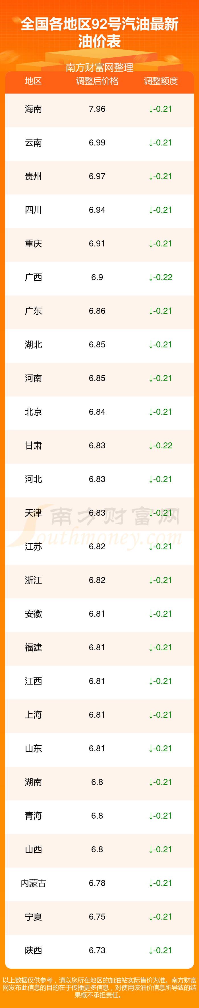 本站提供的油价数据仅供参考,具体数据以加油站报价为准。