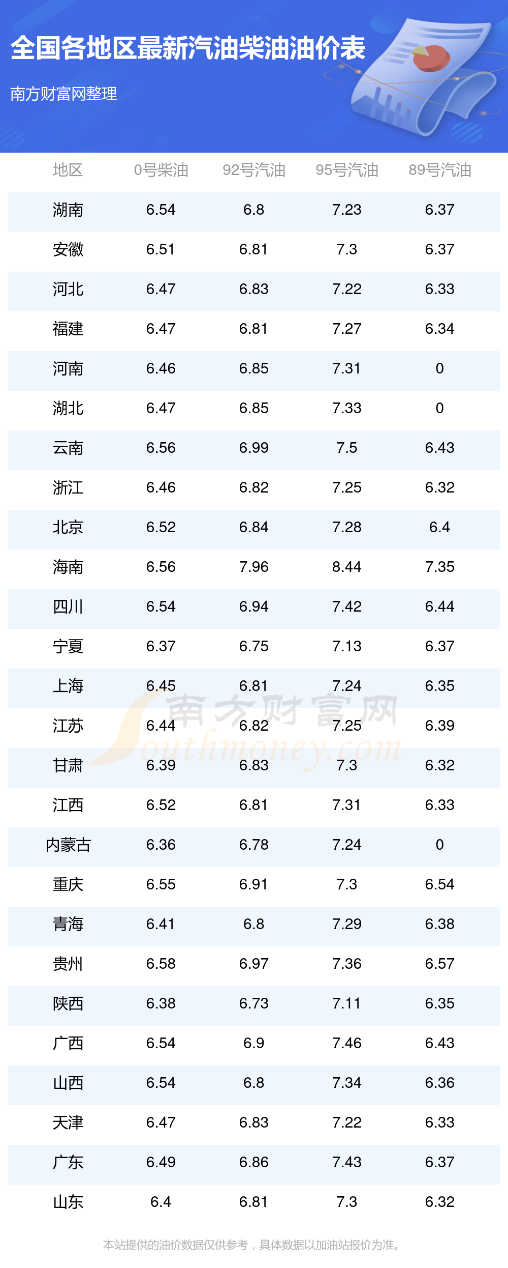 以上油价信息是当前市场上最新油价信息,油价数据仅供参考,实际在售油价可能有小幅偏差,请以您所在地区的加油站实际售价为准。