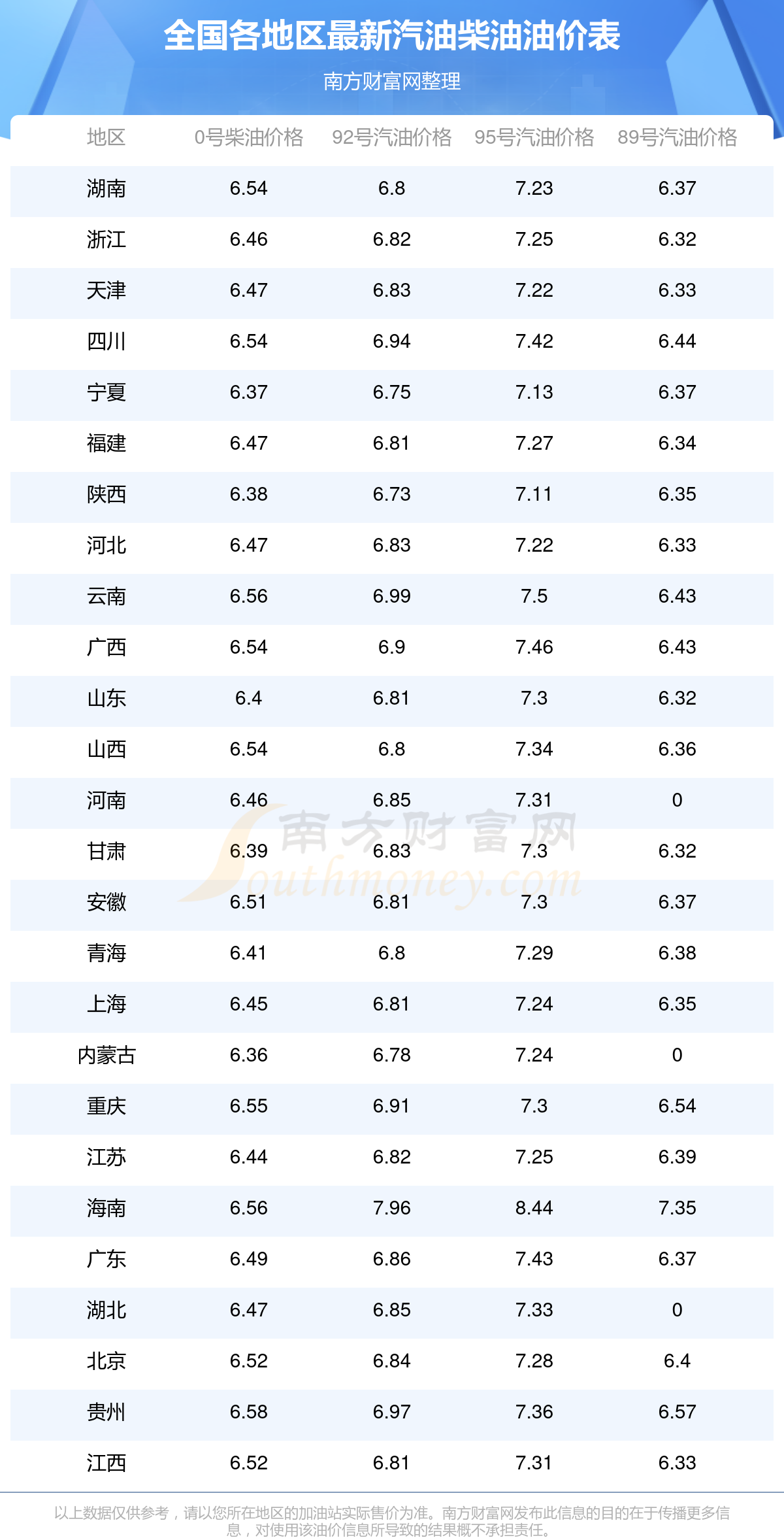 本站提供的油价数据仅供参考,具体数据以加油站报价为准。