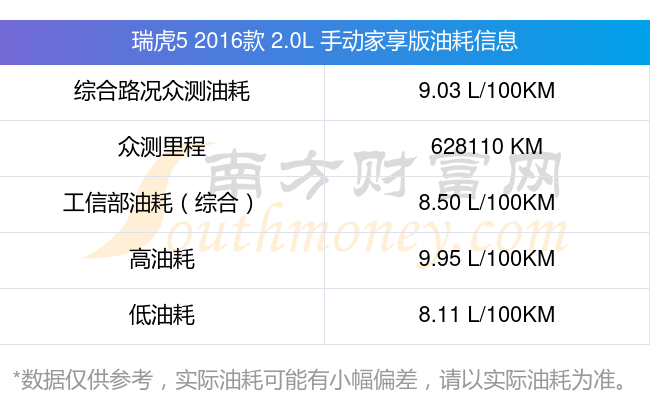 根据车主实测数据,该车型低油耗为8.11升每百公里,高油耗为9.95升每百公里,综合路况众测油耗为9.03升每百公里,工信部综合油耗为8.50升每百公里。