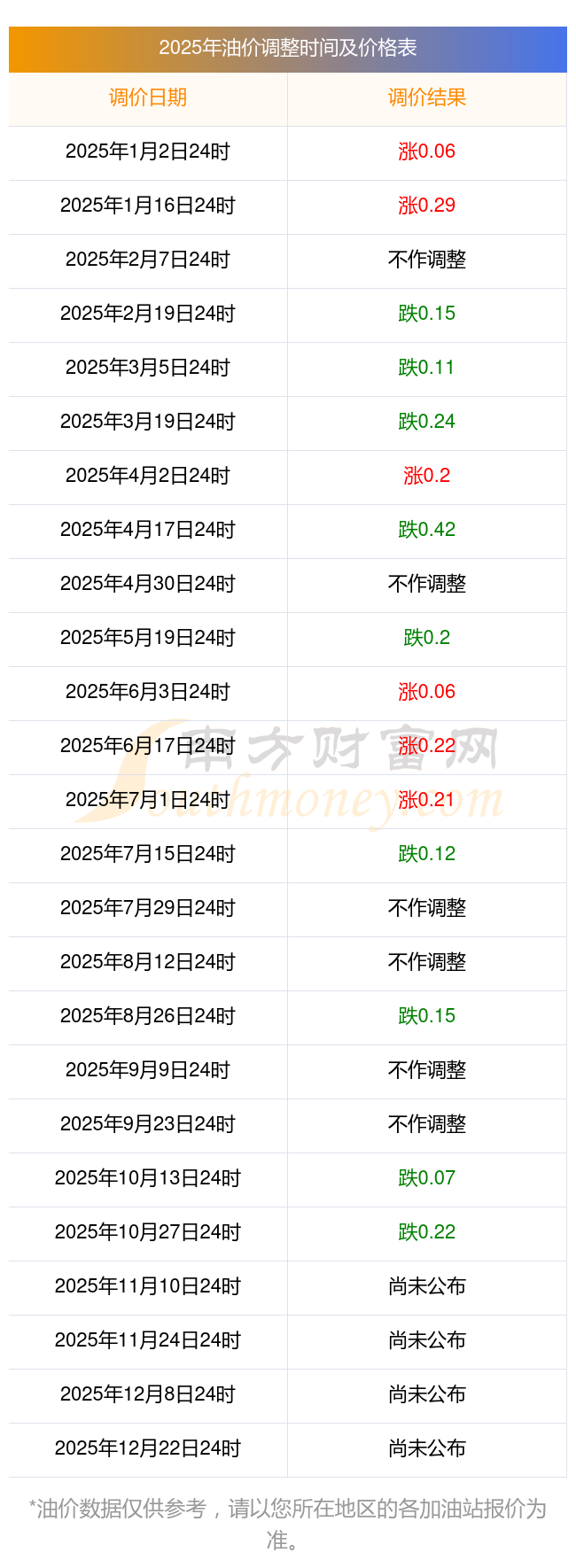 汽油价格调整最新消息:下一轮油价调整时间11月10日24时。11月5日青海汽油、柴油每升的最新价格:92号汽油6.8元,下跌了0.21元;95号汽油7.29元,下跌了0.22元;89号汽油6.38元,下跌了0.2;0号柴油为6.41元,下跌了0.22元,本次油价调整时间是10月28日。