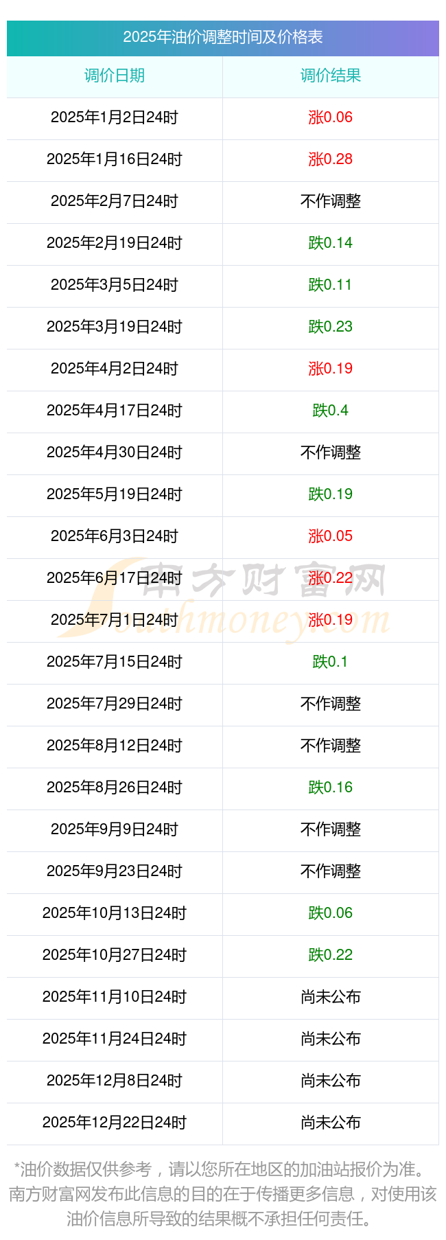 2025年11月5日国内油价调整时间及价格一览表