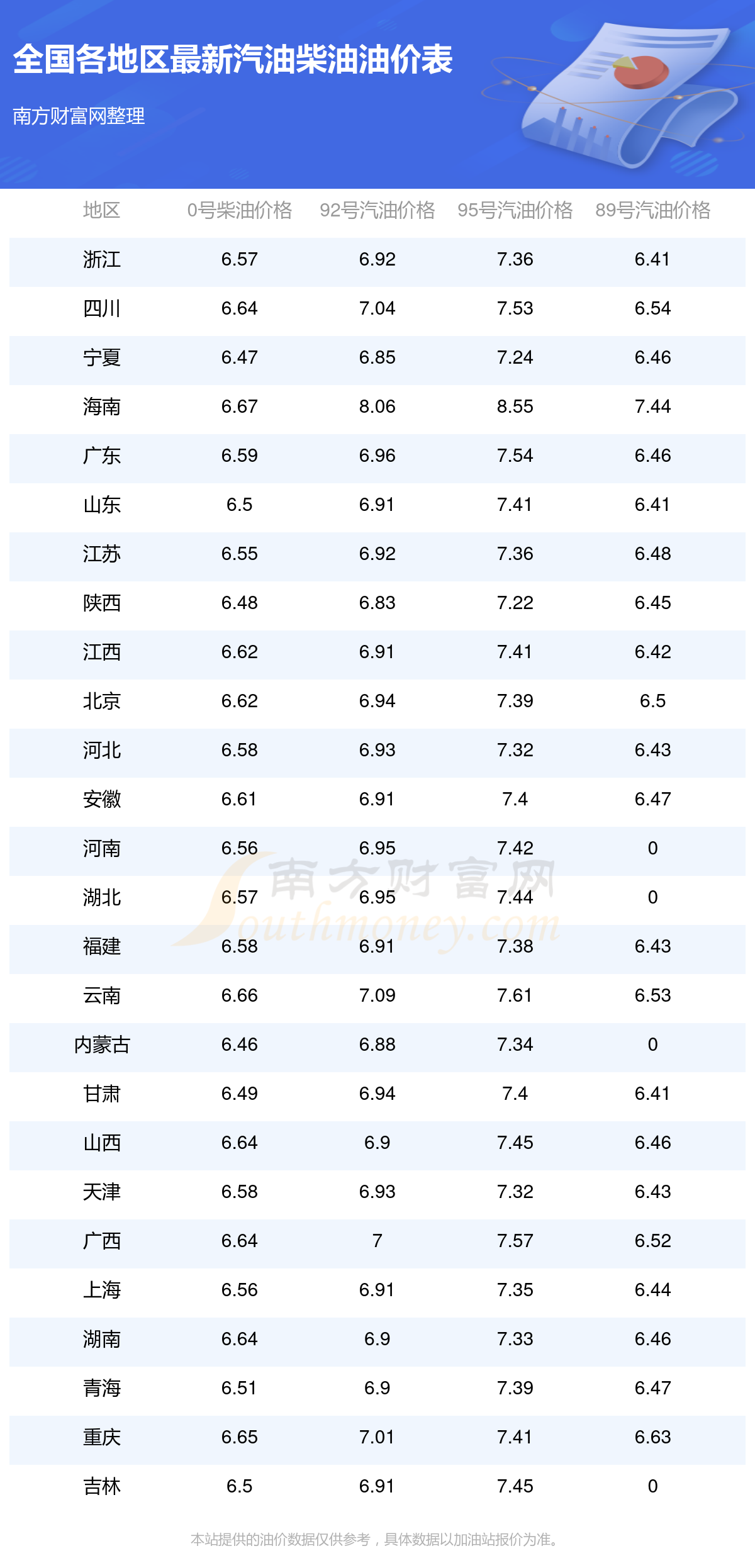 2025年11月14日全国油价调整及最新汽油价格表