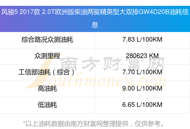 数据仅供参考,一般现实油耗与测试值会有差异,请以实际油耗为准。